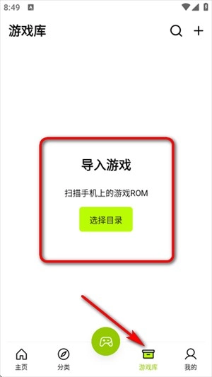 点击进入游戏库页面,点击选择目录导入本地游戏