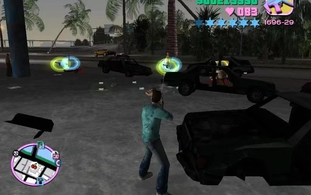在迈阿密工作期间,R星团队拍摄了海量照片,细致记录下这座城市的诸多特色——从标志性建筑、摇曳的棕榈树到各类娱乐场所,这些影像都成了《罪恶都市》的创作素材。由于时间紧迫、任务艰巨,他们考察结束后便立刻赶回工作室投入开发。凭借《侠盗猎车3》的开发经验,这次游戏制作进程十分高效。同时,他们还优化了车辆驾驶系统与物理撞击效果,让游戏体验更贴近现实。彼时R星也具备了更充足的资金,于是邀请了不少当时知名的演员参与配音,其中甚至包括一些好莱坞演员。不久后,Take-Two决定为R星追加更多预算,R星便计划为这款游戏增添新内容——他们加入了飞行系统,让玩家能驾驶飞机在迈阿密上空自由翱翔,还设计了操控无人机的任务。