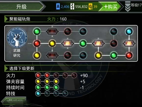 在火线指令诺曼底里升级磁轨和解放雷!等最后一个关节的灯亮了,就能用来打坦克。先买1000A,把磁轨升级到5452A,同时把第一排的两个也各升到100A,算下来一共需要6552A。