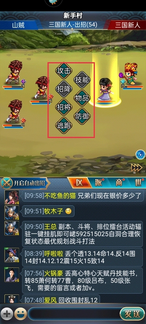 5、与山贼交战时,需依据敌人的实力,点击中间的按键发起反抗。
