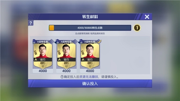 转生既然有这么多益处,那我们该怎么实现转生呢?首先,每位球员的转生都得消耗转生点数,具体的数量要根据球员的品质来确定。要是我们想获取转生点数,就得消耗同名球员才行。通常情况下,球员第一次转生只需要1张同品质的同名球员卡,而第二次转生及以后,就需要更多的同名球员卡了。需要注意的是,哪怕是不同品质的同名球员,也能够通过消耗来获得转生点数。举个例子,一张S级的郑智,是可以消耗多张A级的郑智来进行转生的。