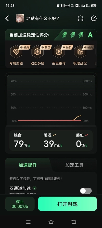 2、加速完成后,点击下方打开游戏;