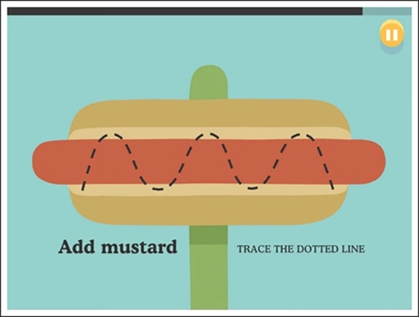 6、玩法:玩家留意中间红色香肠上的虚线后,需使用沙拉将这些虚线覆盖住。