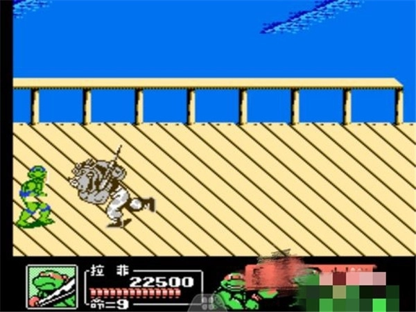过关技巧:可以利用第二个忍者龟的铁头功持续攻击boss,要是控制技能运用得当,就能无伤击败boss。
