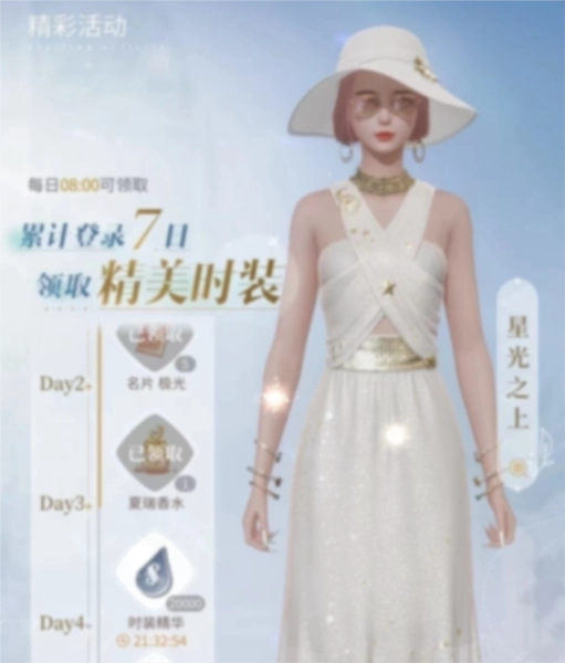 这是游戏推出的单次限时活动,玩家只需累计登录满7天,每日都能领取对应奖励,其中第六天的奖励正是“星光之上”套装。活动规则不强制连续登录,即便7天内有一天未登录,也不会影响已达成的奖励领取资格。