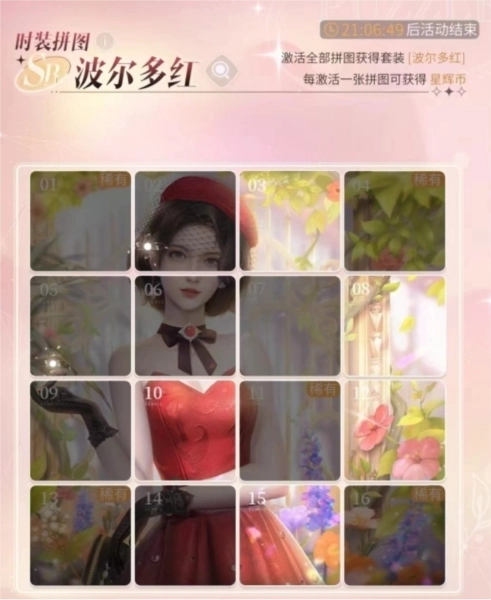 完成活动任务可获取拼图,集齐所有拼图即可兑换套装“波尔多红”。