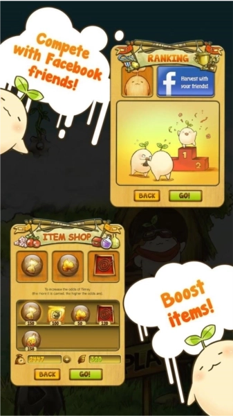 Mandora是一款模拟种植类游戏,玩家可以和好友一同培育蔓陀罗,互相较量——既要收集更多品种的蔓陀罗,也要努力获取更高分数,解锁从未拥有过的稀有品类。那些软萌的蔓陀罗宝宝总能轻轻戳中你的心,游戏操作毫无繁杂感,简单易上手:只需在限定时间内尽可能拔出成熟的蔓陀罗来积累高分,若能保持连续拔出成熟蔓陀罗的状态,还有机会收获稀有的新品种,以及能瞬间提升分数的道具。