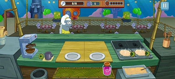4、玩家将扮演海绵宝宝帮助蟹老板经营餐厅,请随时准备好为客人提供美味佳肴!