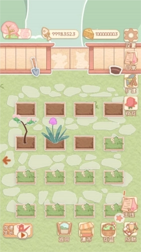 1、这里治愈性的清新画风,在一个花圃中种植花朵,让他们茁壮成长;
