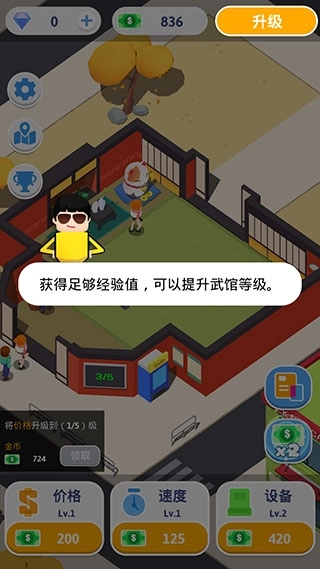 5、不断的去创造更多的收益,扩建自己的武馆,玩家还可以去开设更多的分馆,吸引更多顾客报名学习;
