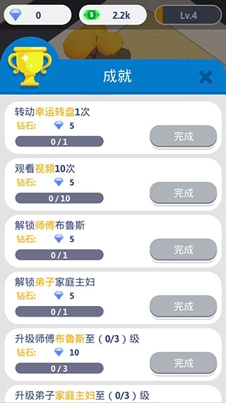 2、放置经营操作,游戏玩法非常搞笑,武馆建成就等着你这个师傅上场!