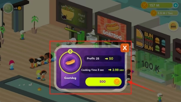 4.对热狗店进行升级,精进你的烹饪技艺,以此来获取更丰厚的收益。