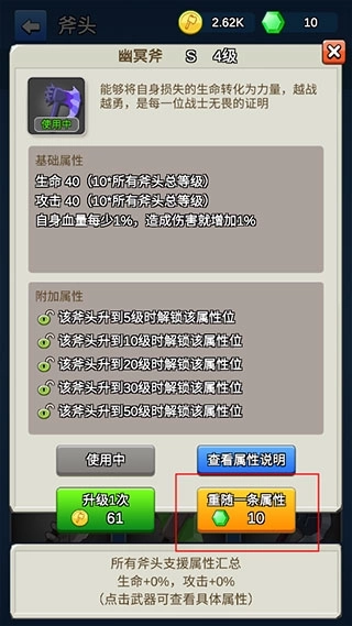 注意,斧头需要升级到五级才能升级属性。