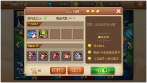 相信不少玩家在拿到三星评价后,会对重复刷副本升级的模式感到厌倦,这时候用扫荡功能就能跳过战斗环节,直接消耗活力值获取副本奖励!