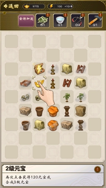 7、在“国库”里以合成的形式获取金元宝,并进行商品出售。