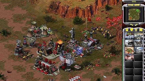 5、用五个飞碟突袭敌方基地时,只需瞄准电厂攻击就行,得先把敌方基地的电断掉,这样后续攻击才好开展。等敌方基地防御系统失效后,派己方工程师进去占领建筑就可以了,工程师可以多投放一些。