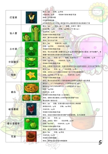 灯笼草、仙人掌、三叶草、裂荚射手、杨桃、南瓜头、磁力菇、卷心菜投手、花盆