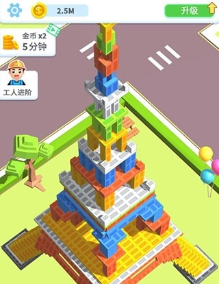 游戏里准备了多种多样的房屋类型供你建造,你能亲手打造出世界闻名的地标建筑。另外,游戏中还有极速搬砖、道具空投等各类随机工具可以免费领取使用,这些工具能帮你加快建造进度,十分实用。要是你想提高效率,也可以雇佣更多工人,组建一支强大的建筑队伍。游戏里的工人是分等级的,不同等级的工人在单位时间内的收益效率存在差异,所以你得合理安排他们的工作,这样才能让整体效率达到最高。同时,游戏中还有不少任务可以接取,完成任务能获得大量金币,这些金币可以用来购买更多道具。不过有些任务难度较大,而且在游戏前期,我们可能没有足够的资源去建造自己心仪的建筑,这一点你完全不用担忧。