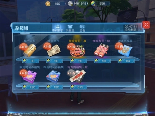 在杂货铺里,每天都能领取限购的福袋礼包。举例来说,玩家每日可在杂货铺领取2个7折的游戏币福袋,2.5折的经验寿司和6折的精力饮料也很值得入手。学会精打细算是晋升Lv.6的首要步骤,这些道具能在战斗中为你提供有力帮助。