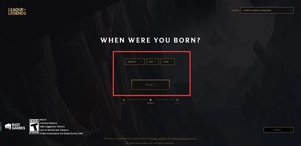 2、输入生日信息后点击“NEXT”(大于18岁)