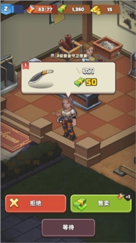 4、积累财富:通过持续售卖装备来升级武器铺并进行扩建,吸引更有实力的客人购买更高级的武器,以此获取更多收益。
