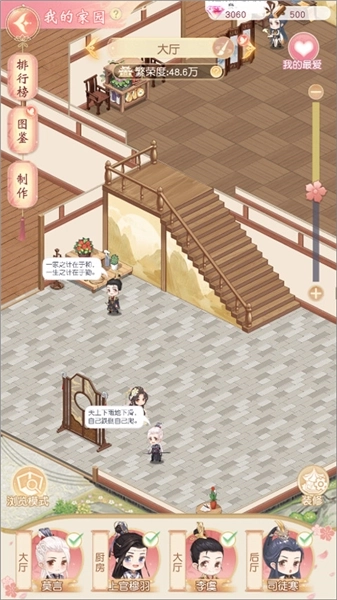 1、掌柜能够收集各类家具,用来布置房间,当集齐一整套家具后,就能为所有伙伴增加属性加成。