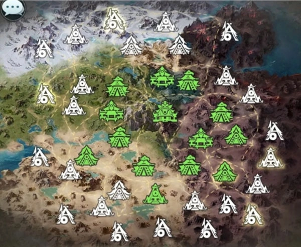 这些增益效果是随机刷新的,根据我的观察,通常1级和2级据点的刷新概率最高,图里的闪光点就是增益效果的刷新位置。