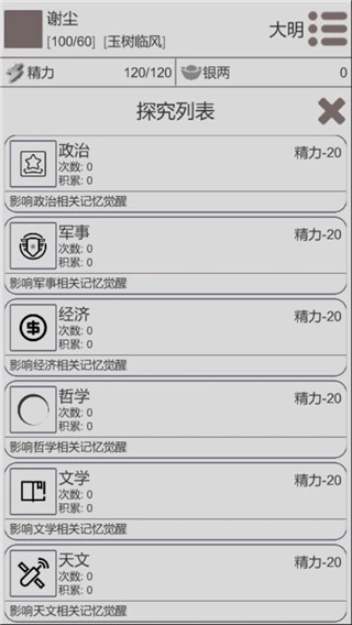 6、要是产业升级完成后还有剩余年龄,就去学习160+的处世探险内容,直到刷出两个年龄药。需要注意的是,回合中出现的记忆会解锁新的产业,这种情况下优先升级产业,而不是继续学习或探险。