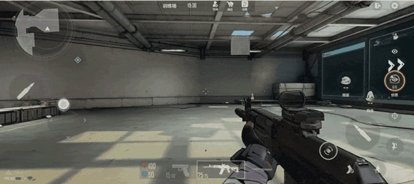 首先,我们要先松开移动轮盘,让角色停止移动,之后再进行开火射击。为了更直观地体现这一点,我们也能通过观察准心来判断角色是否处于静止状态。