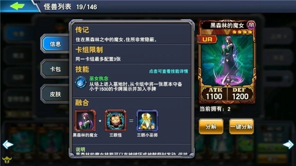游戏后期也常用的卡牌里,神反绝对排第一,堪称翻盘神器。黑魔女在黑龙卡组、黑暗大法师卡组及其他卡组中都能发挥重要作用,尤其是想玩黑暗大法师的玩家,黑魔女是必备卡。番茄则是强力的预言怪兽,在人偶卡组里能特招病毒,在黑龙卡组中可特招黑龙之雏。另外还有个前期小技巧:决斗之城社团的社团商店里有暗黑界斗神(六星,攻1500防2400),获取难度较低,搭配番茄特招能快速站场。