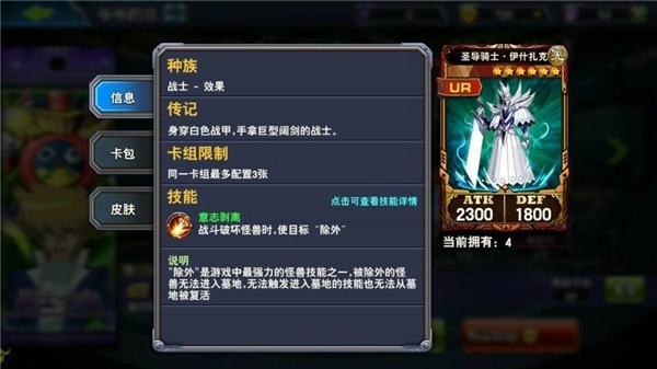 城之内的初始怪兽攻击力相当突出——4星怪里有两张1800攻、两张1700攻的卡,再加上6星怪扎克2300的攻击力(它的技能还特别强力),在三个可选角色里更是遥遥领先,所以开局就能占很大优势。更关键的是他的卡组不容易卡手,而且里面还有黑龙,等凑齐黑龙相关卡牌后,后期用黑龙卡组冲分的能力也非常强。