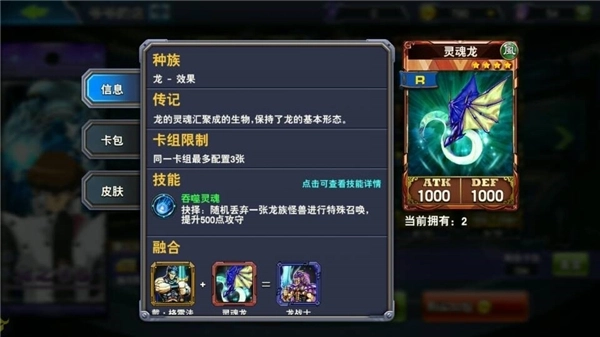 海马不用太担心白龙的获取问题,毕竟开局就送一张;不过这套卡组前期卡手的概率不小,好在能搭配灵魂龙的特招效果来稍微缓解这个问题。在还没凑齐两套卡组的时候,可以去社团商店换一张六星、攻击力2300的高攻怪兽,一回合内用灵魂龙把它特招上场,能降低卡手的情况。等凑齐两套卡组后,凭借30张卡的卡组规模优势,开局拿到天胡牌的概率也会有所提升。