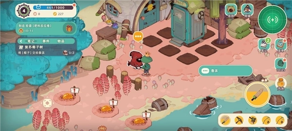 2.采集:探索时多挖发光材料、稀有果实,后期解锁高级榨汁/汽水配方(如调味香芋汁),稀有材料能大幅提价。