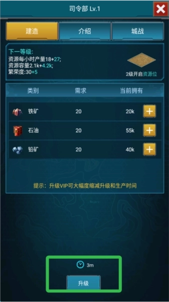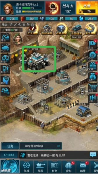 1、按照任务流程的指引快速推进基地建设,完成后就能领取丰厚的奖励。
