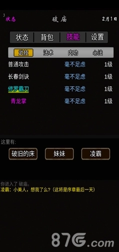 1月1日这天,先去击败混混,能获得火球术;接着前往铁匠铺和铁匠交谈,可得到一把破刀,把这些都装备好。之后去上演英雄救美的戏码,再向北前往林府,和林10一同赏析。接下来是分支剧情: