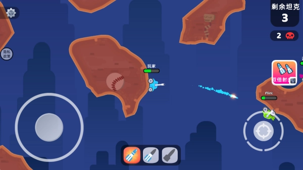 1. 左手的虚拟摇杆负责操控坦克的移动方向,右手的按钮则对应射击、跳跃与技能释放功能,通过简单的操作组合就能施展出连贯的组合技。