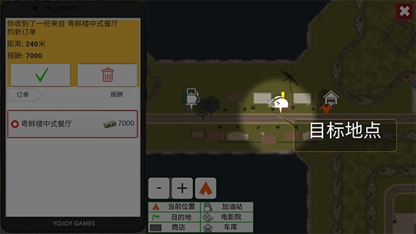 1、进入游戏后,点击手机查看待接送的订单,点击绿色的“√”按钮即可接受该订单。