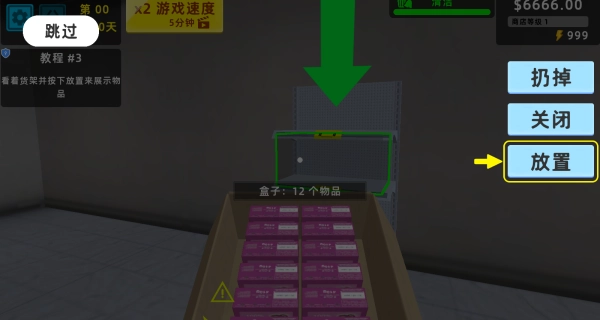 2、把盒子里的那些物品拿出来,想办法将所有货架都陈列摆放整齐。