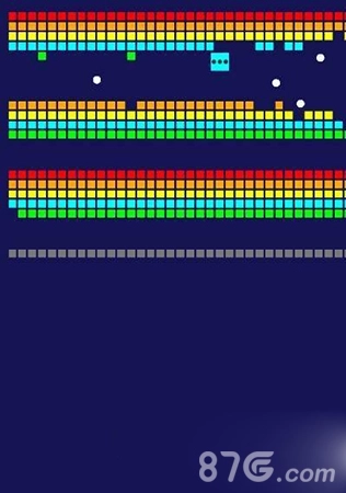 不管是哪一关,关键都是把球打到两排方块之间,让它自行弹动。