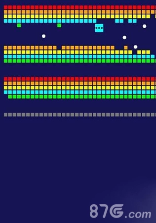 这游戏原本只有一颗小白球,要怎样才能把所有方块都打完呢?关键技巧是把小白球打到两排方块的中间位置。
