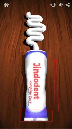 4、点击之后,页面里会出现一支已经拧开盖子的牙膏,这时候我们从牙膏的顶部往上挤。牙膏会越挤越多,等挤完之后又会重新开始这个过程,非常减压。