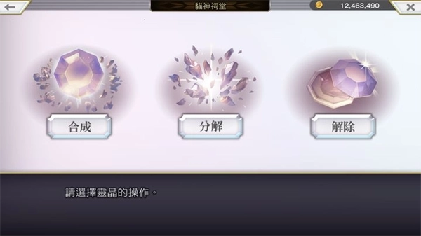 如果不想保留灵晶,可将其分解为灵晶碎片与灵晶结晶。灵晶的分解操作需在猫神神社开展。