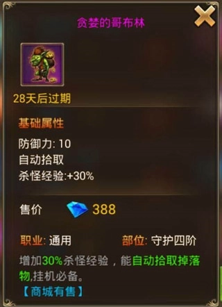 3、获得贪婪的哥布林时也是一样的情况,它可以让角色杀怪获得的经验提升30%,建议在它存在的这段时间里完成主线任务,如果时间充裕的话,把恶魔深渊也打完就更好了。