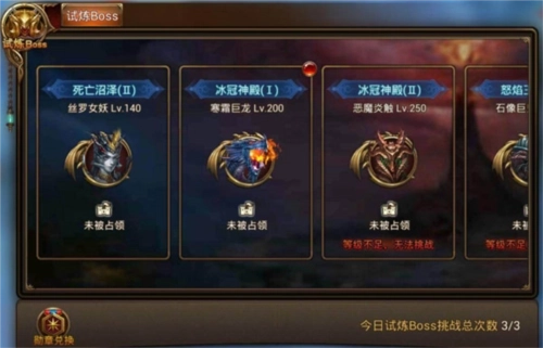 5、每日的试炼boss副本也要打完,最好能组上强力队友,毕竟该副本会产出经验丹,通关评级越高,得到的经验丹等级就越高,对应的经验也会更多。