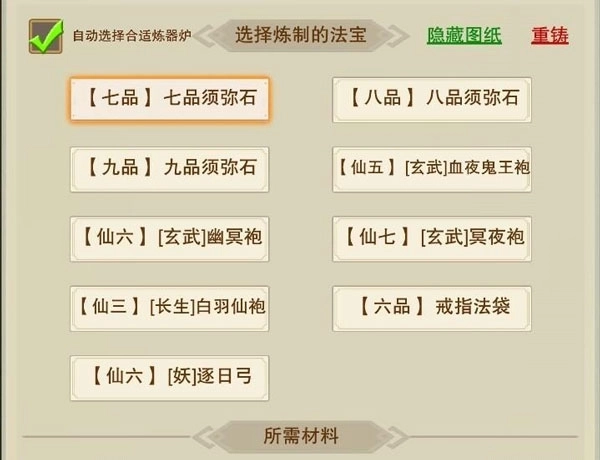 4、七品至九品须弥石的制作材料为空冥石、陨铁与黑曜石。