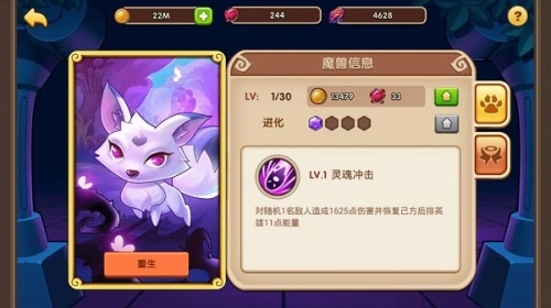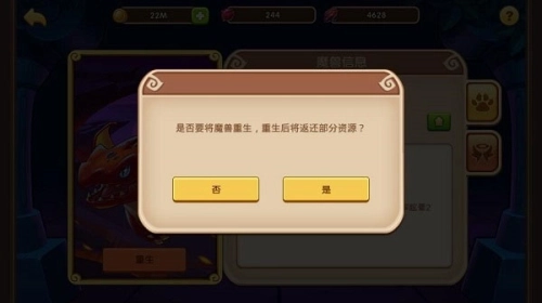 PS:如果你发现自己培养错了魔兽也没关系哦,我们提供了重生功能,可以返还部分消耗材料,免除你的后顾之忧。