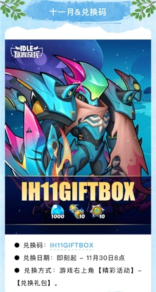 十一月兑换码:IH11GIFTBOX