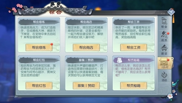 1、帮会成员可以在募集面板中进行赞助;