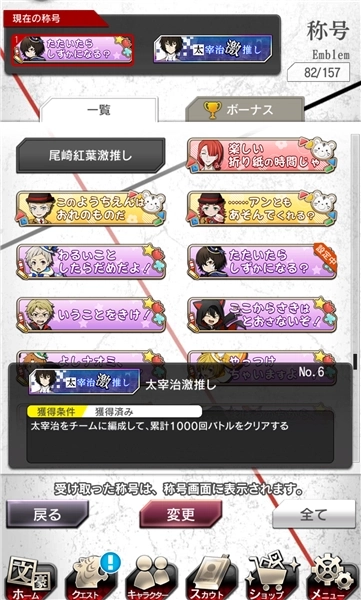 游戏内称号的收集,除了活动限定的那些,大部分称号都得带上对应的人物才行——不管是R、SR还是SSR品质的人物都可以。