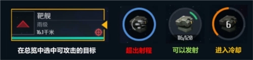 2、舰载武器指的是安装在船只上的武器装备。在总览界面选中一个可攻击的目标后,点击武器按钮,要是目标处于该武器的射程范围之内,武器就会发射,随后进入冷却状态。
